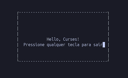 Você deverá ver uma janela centralizada com a mensagem de boas-vindas. Pressionar qualquer tecla encerrará a aplicação e restaurará o seu terminal.